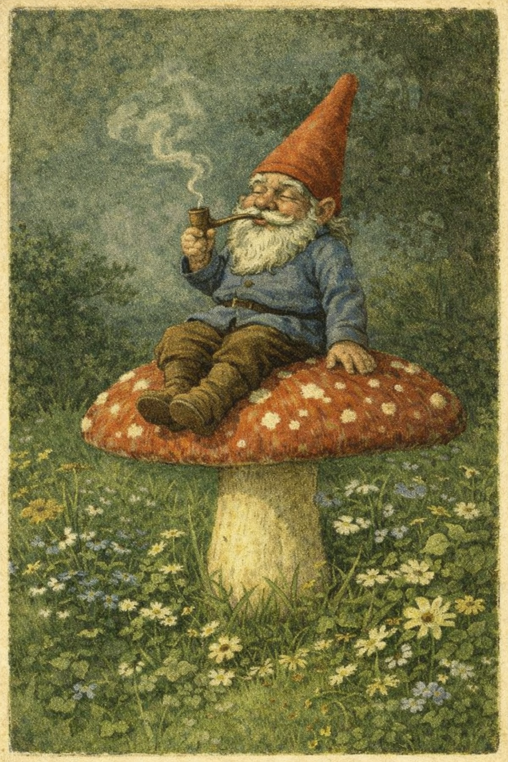 “Observed along the riverbank while a fisherman cast his line. The gnomes appeared to be studying his technique with great interest.”